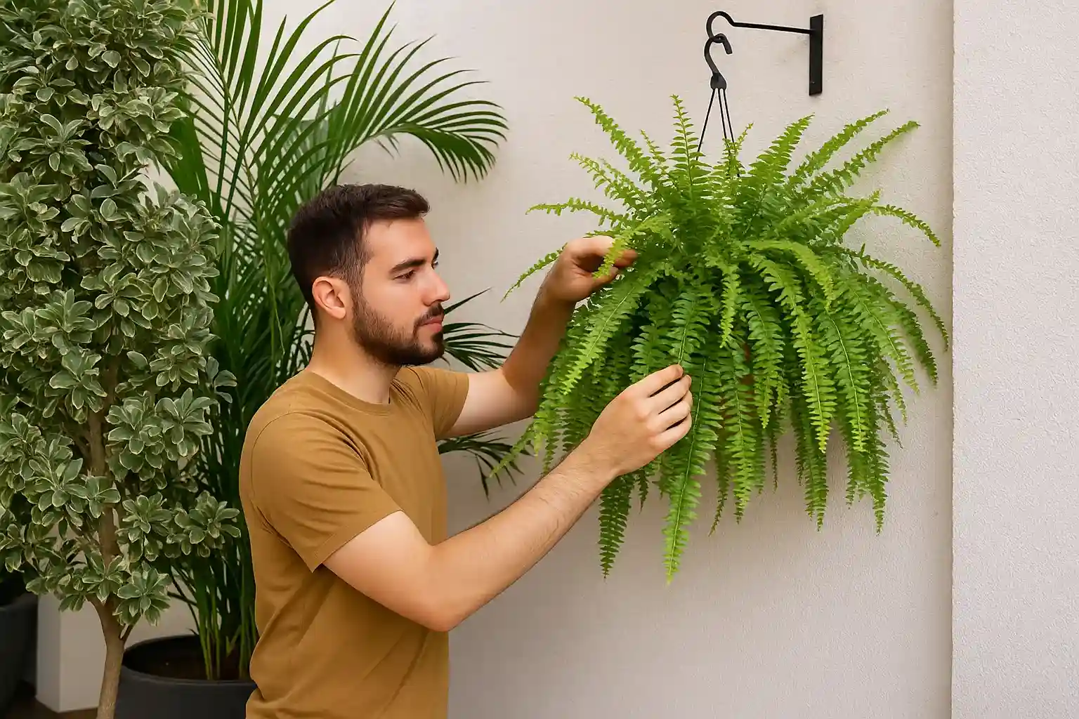 Outra barreira natural — e muitas vezes ignorada — são as próprias paredes da casa. Se sua samambaia está em um local onde o vento bate de frente, reposicioná-la próxima a um muro ou parede pode fazer toda a diferença. O ideal é que esse apoio físico esteja entre a planta e a fonte do vento, como janelas ou corredores externos.