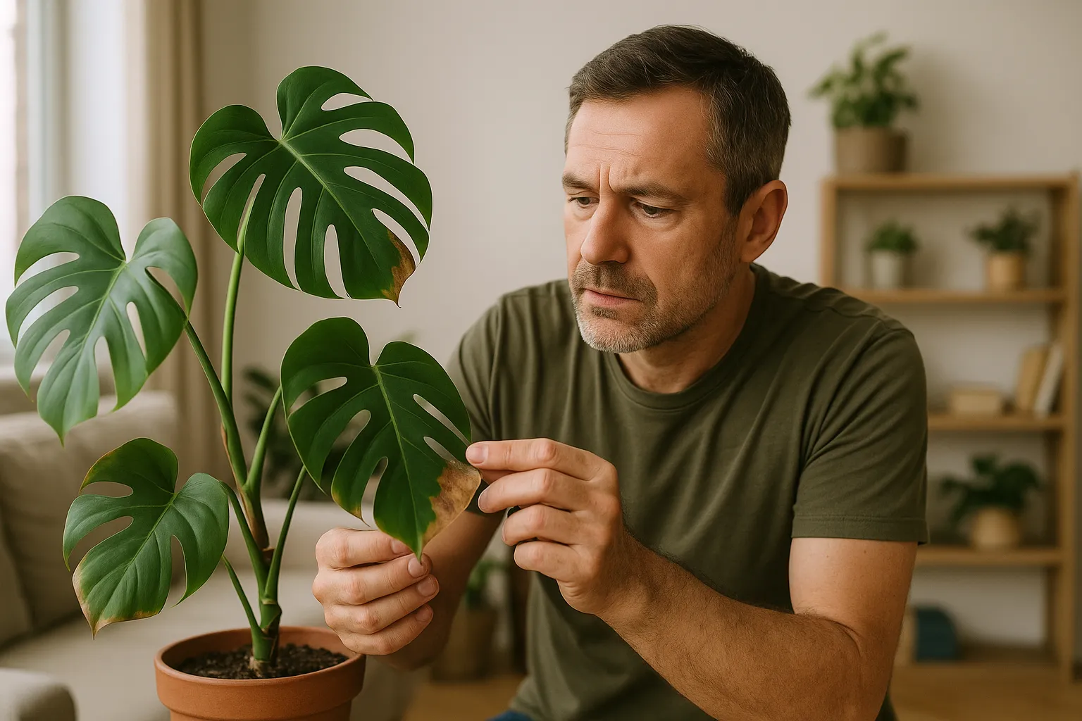 Outro ponto crítico é a luz. Apesar de gostar de ambientes iluminados, a costela-de-adão não tolera sol direto por muitas horas. Isso queima as folhas e dá aquele aspecto seco nas pontas — um sinal claro de estresse. Entender o que está desequilibrado no ambiente é o primeiro passo para a recuperação.