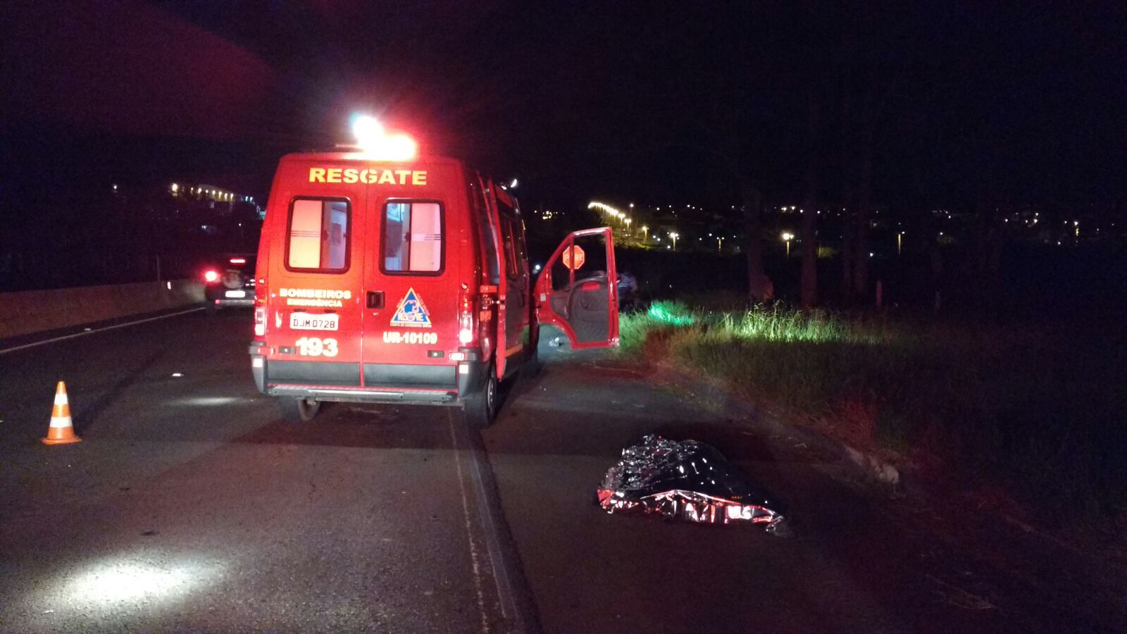 Corpo da vítima na Rodovia SP-294 (Foto: Gabriel Tedde)