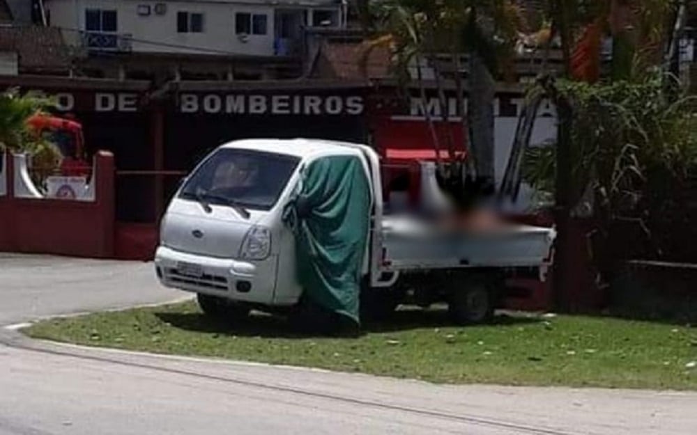 O caminhão com os cadáveres foi deixado em frente a um batalhão do Corpo de Bombeiros, mostram imagens do canal por assinatura GloboNews.