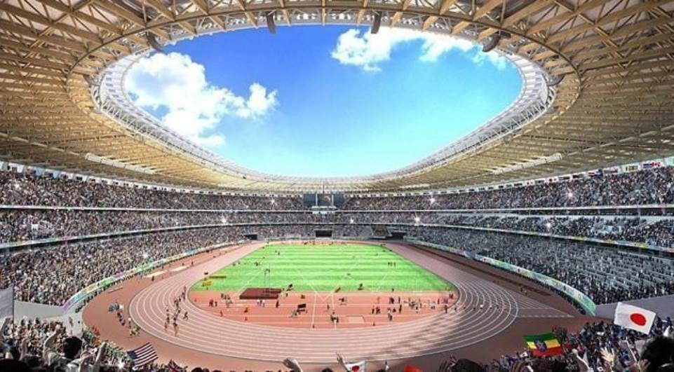 Criado pela arquiteta iraquiana Zaha Hadid, o projeto provocou fortes críticas de profissionais japoneses por ser muito grande e caro, além de prever a construção de dois arcos enormes no topo do estádio, um recurso estético considerado desnecessário por especialistas e que elevaria de maneira significativa os seus custos.