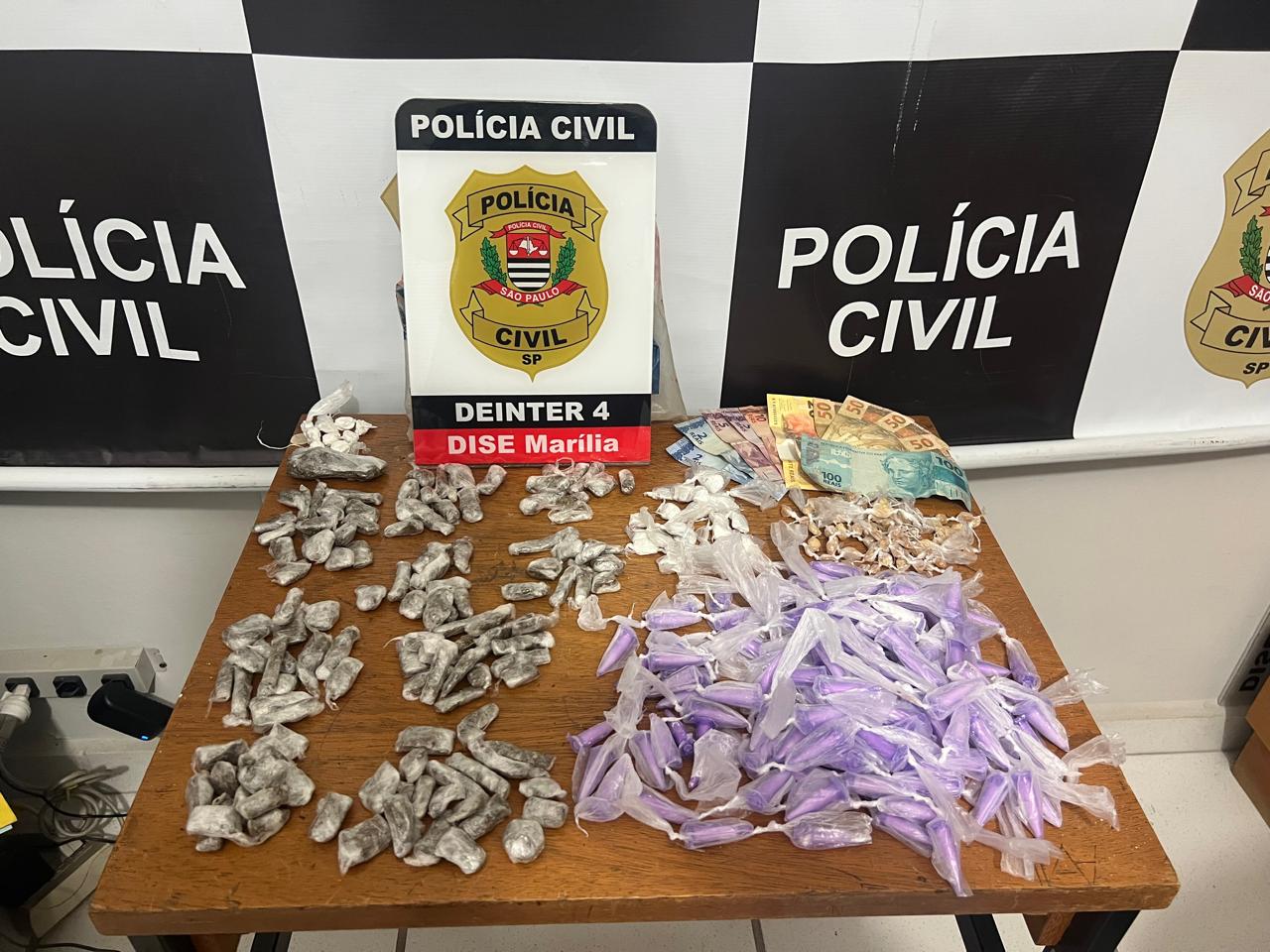 Na mesma embalagem, o jovem carregava ainda 85 pedras de crack embaladas em plásticos lacrados com nó tipo “correntinha”, 129 microtubos plásticos com cocaína e nove porções adicionais da mesma droga, também embaladas com nó.