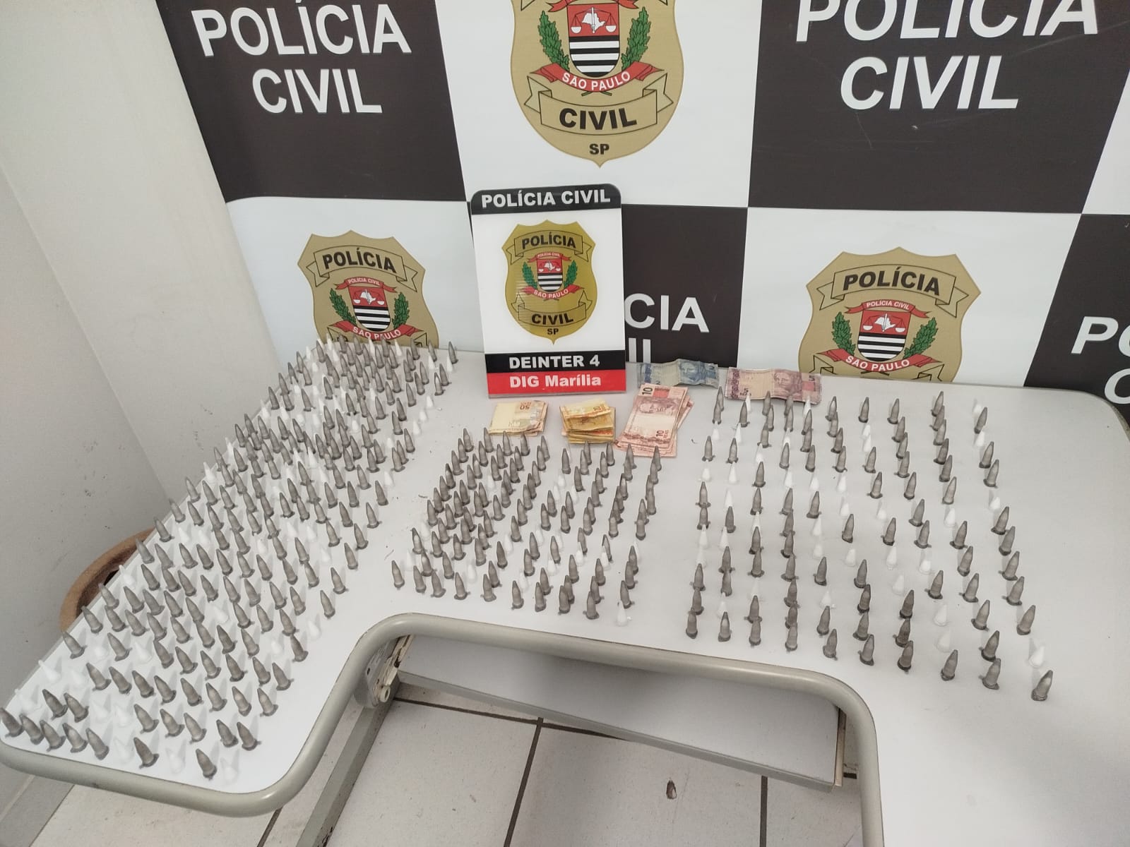 Um rapaz de 18 anos foi preso em flagrante por tráfico de drogas na favela do Azaleia, zona sul de Marília, durante uma ação da Delegacia de Investigações Gerais (DIG) nesta quarta-feira (26). A abordagem ocorreu enquanto os policiais civis realizavam uma incursão na comunidade e flagraram o suspeito comercializando entorpecentes em um ponto de venda ilegal.