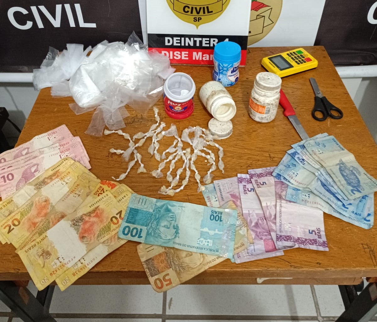 Policiais civis da Delegacia de Investigações sobre Entorpecentes (Dise) de Marília prenderam em flagrante nesta terça-feira (22) um homem de 55 anos. Ação aconteceu na Vila Barros (zona norte), após uma investigação policial que apontava para o suspeito.