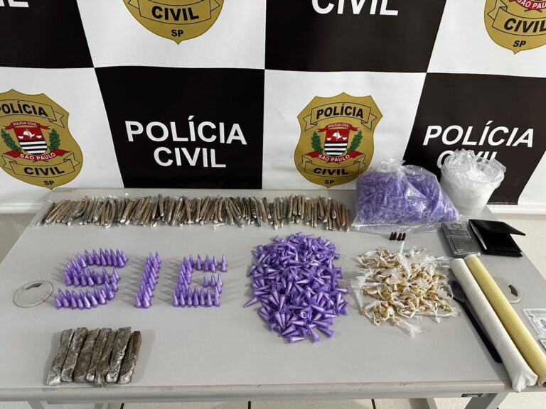 A Polícia Civil de Marília apreendeu, nesta quinta-feira (11), munições, drogas e materiais usados no tráfico durante o cumprimento de um mandado de busca e apreensão em uma casa no Parque das Azaleias, zona sul da cidade. Dois homens foram identificados e estão sob investigação.