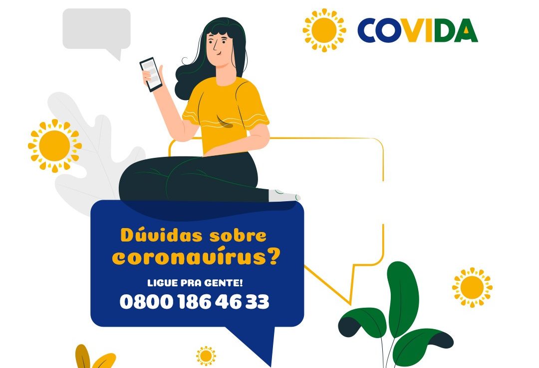 O atendimento telefônico do CoVida pelo 0800 146463 será das 7 às 19 horas, de segunda à sexta e das 10 às 14 horas, aos sábados e domingos.