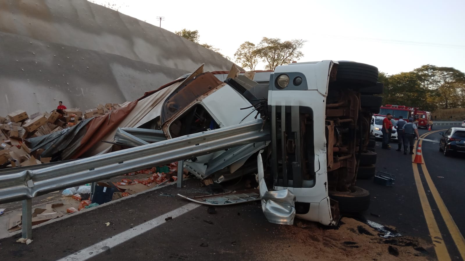 Segundo as primeiras informações do Corpo de Bombeiros, um caminhão que transportava carga de biscoitos de uma fabricante de Marília, tombou na rodovia, no trecho conhecido como Serra de Echaporã.