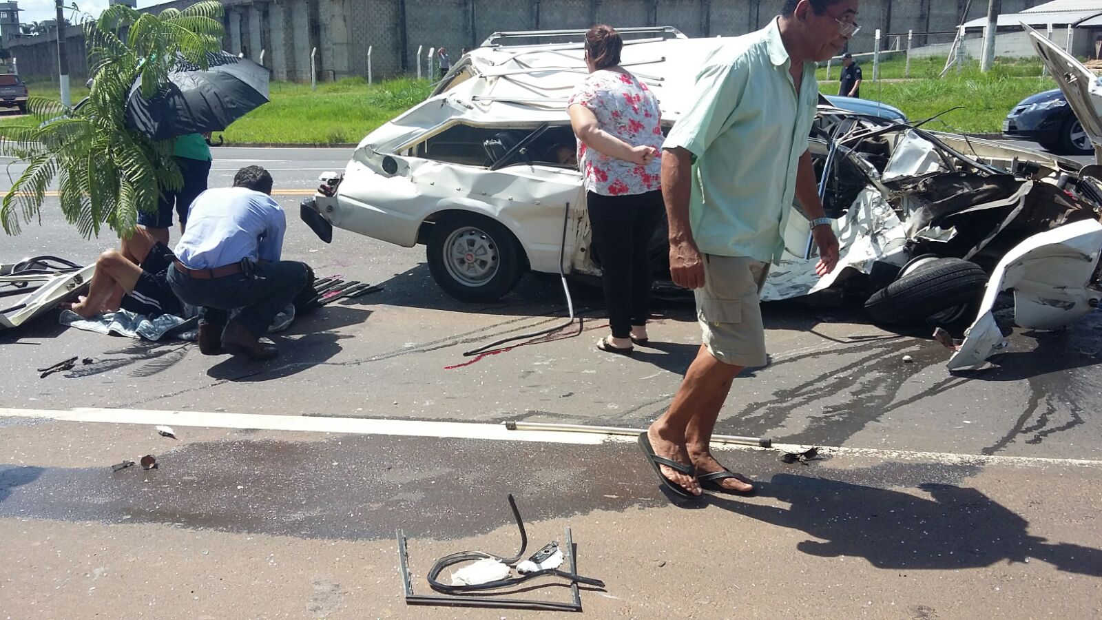 Um caminhão teria atingido uma Belina que cruzava a pista. Outro carro que passava pelo local exatamente neste momento, também acabou participando do acidente.