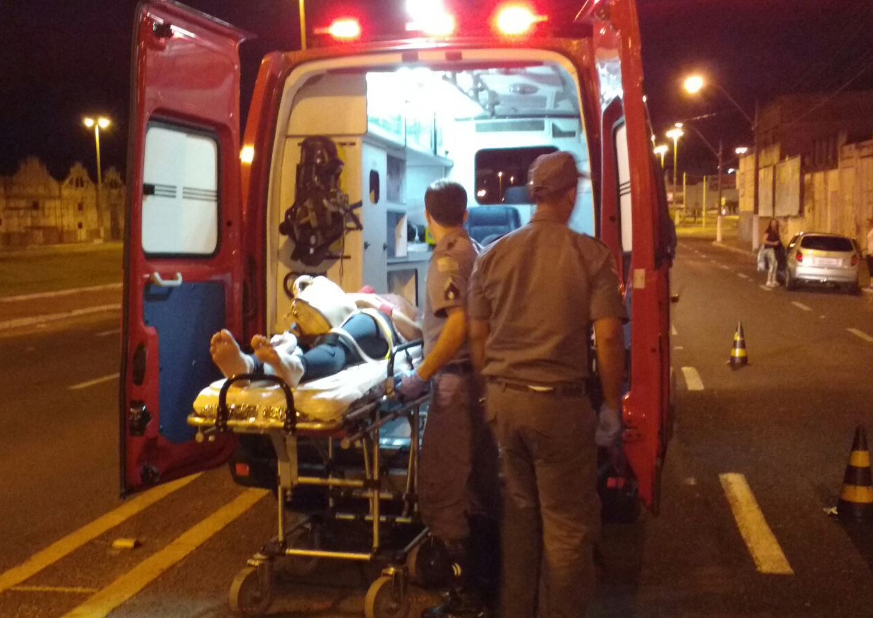 Um rapaz e uma moça foram ao solo com o impacto e tinham suspeitas de fraturas.