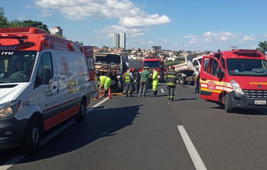Uma colisão envolvendo ao menos três caminhões complicou o trânsito na Rodovia do Contorno, trecho próximo da zona Oeste de Marília, no começo da tarde desta quarta-feira (28).