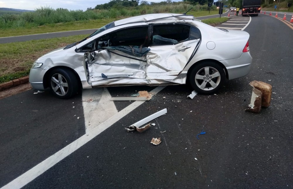 A batida aconteceu no quilômetro 357 entre um carro e um caminhão.O carro não teria respeitado a sinalização de parada obrigatória e foi atingido pelo caminhão na lateral.