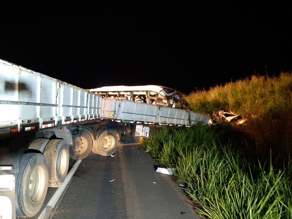 Segundo a polícia, um ônibus bateu contra um caminhão na Rodovia Assis Chateaubriand (SP-425), na altura do quilômetro 385.