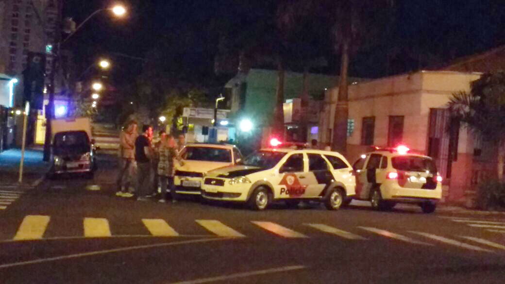 Acidente de trânsito registrado durante o final da noite de ontem (17), entre uma viatura da Polícia Militar e outro automóvel, no cruzamento das ruas Goiás e Pedro de Toledo.
