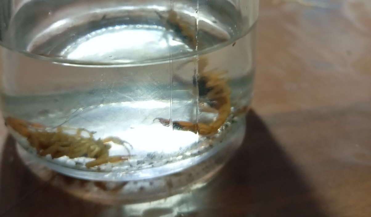 “Eu estava dormindo quando senti a picada. Me levantei para ver o que tinha acontecido e o escorpião estava na minha cama. Já encontramos vários outros aqui em casa, inclusive meu netinho também já se deparou com escorpião”, contou Regiane.