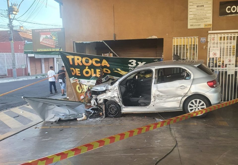 Após a colisão, o motorista de 24 anos perdeu o controle da direção do automóvel e invadiu o posto de combustíveis.