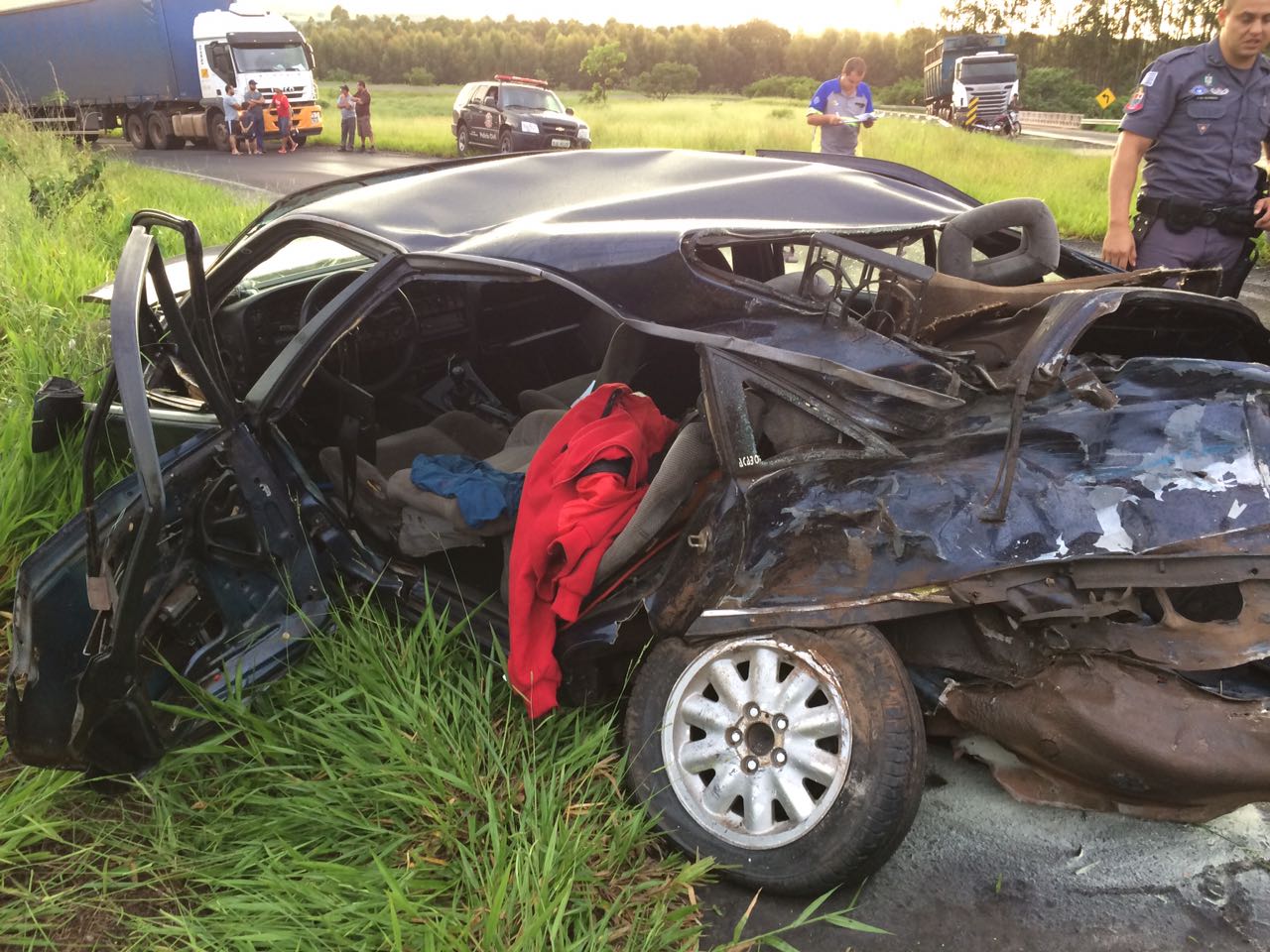 De acordo com o Corpo de Bombeiros, um carro de Paraguaçu e uma carreta de Umuarama/PR se chocaram frontalmente após o motorista do automóvel perder o controle da direção.
