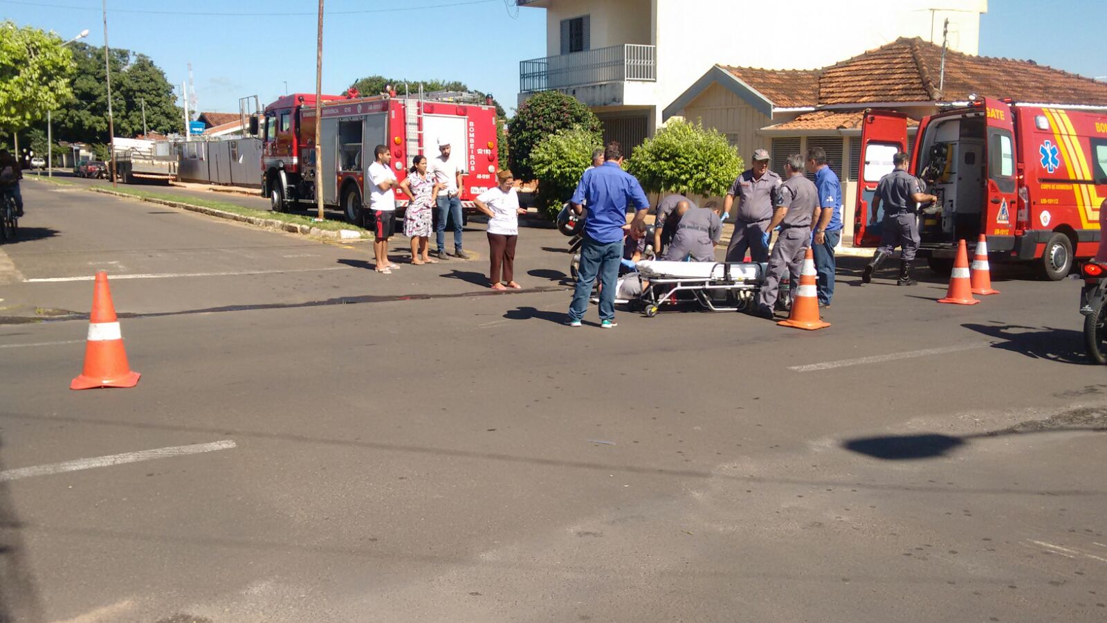 A colisão envolveu carro e moto. Com o impacto, o motociclista foi ao solo e felizmente teve apenas ferimentos leves. Ele foi socorrido por uma unidade de resgate até o Hospital das Clínicas.