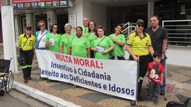 No sábado, nas primeiras horas da manhã, as vagas convencionais de veículos na avenida Sampaio Vidal entre as ruas 9 de Julho e D. Pedro, estavam ocupadas com cadeiras de rodas em mais uma Ação da Multa Moral.
