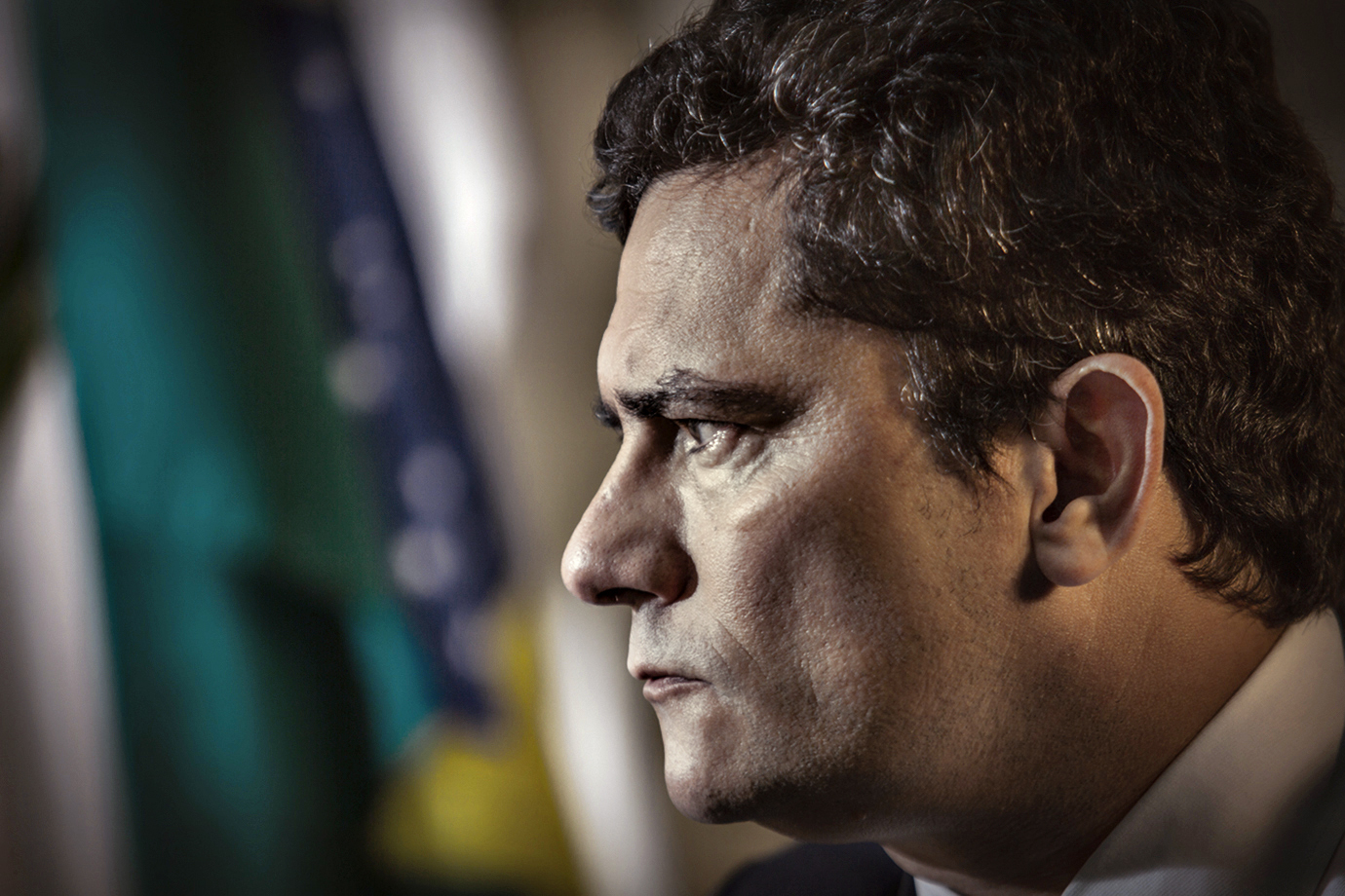 BRASILIA, BRAZIL - MARCH 30: Brazilian Justice Minister Sergio Moro looks on during an interview on March 31, 2020 in Brasilia, Brazil. Sergio Moro, said today April 23, 2020, that he will leave the government if the President Jair Bolsonaro goes through with his decision to change the Federal Police Chief Mauricio Valeixo. (Photo by Andre Coelho/Getty Images)