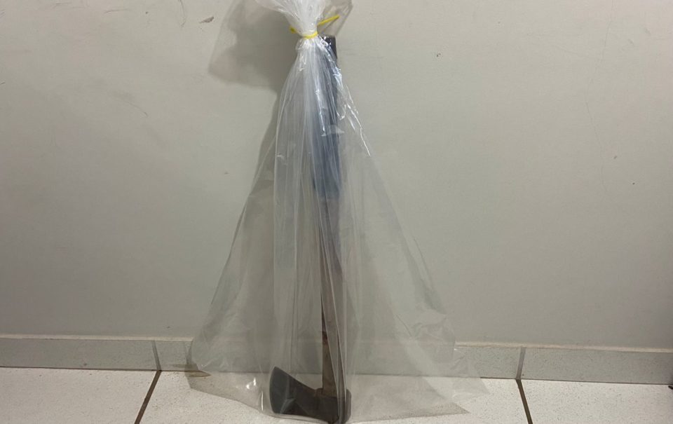 Quando encerraram o jogo, o homem saiu na calçada do imóvel e foi surpreendido pelo ex-enteado. O acusado portava um machado e, repentinamente, desferiu um golpe na direção da vítima, que acertou o portão da residência.