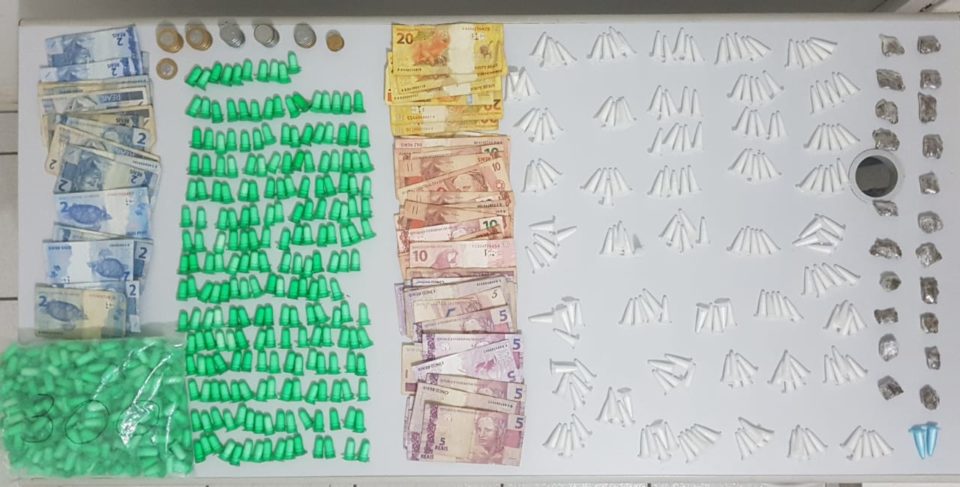 No dia do flagrante os policiais localizaram na mochila de Souza 733 pinos com cocaína, 21 porções de maconha (pesando 50 gramas) e R$ 594 em dinheiro.