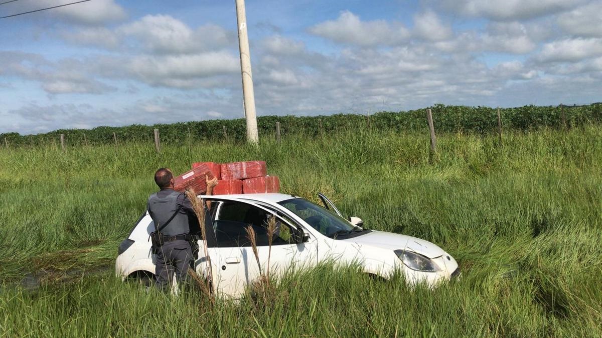 A vítima alegou que era o motorista que transportava 411 tabletes de maconha em um Ford Ka, com placas de Cascavel (PR), em crime ocorrido na manhã deste domingo (17).