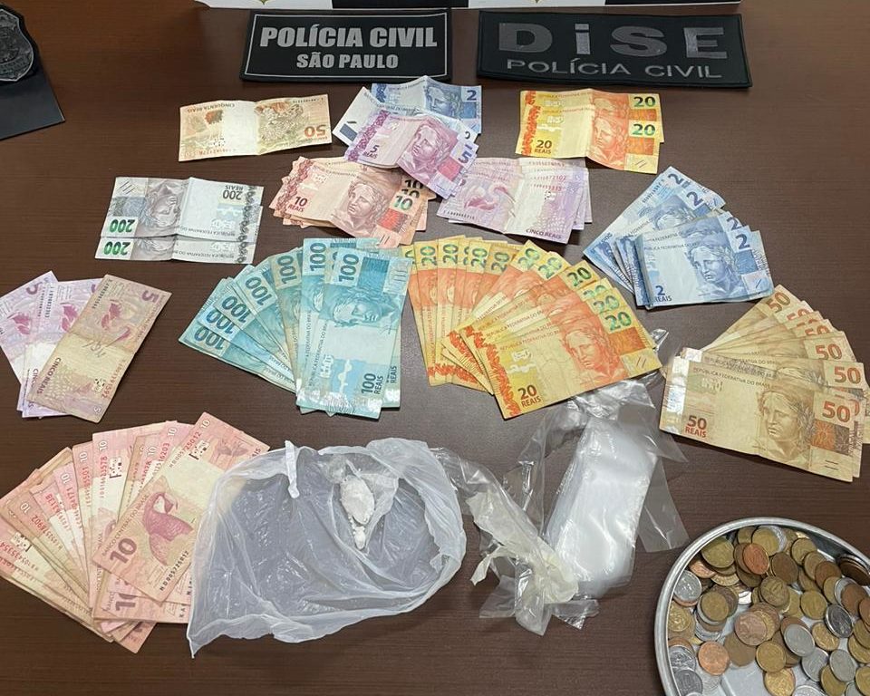 Na operação, os policiais apreenderam uma porção de cocaína, dinheiro e materiais utilizados para embalar a droga.