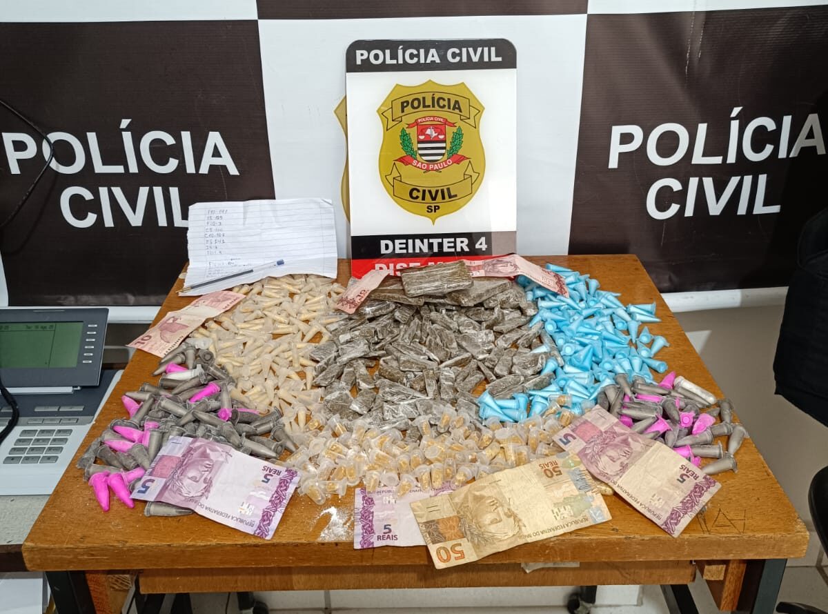 Ao notar a aproximação dos policiais, o suspeito tentou fugir, mas foi detido após uma breve perseguição. Com ele, os agentes encontraram 255 porções de cocaína, 241 de crack, 145 de maconha, além de R$ 95 em dinheiro e anotações ligadas ao tráfico.