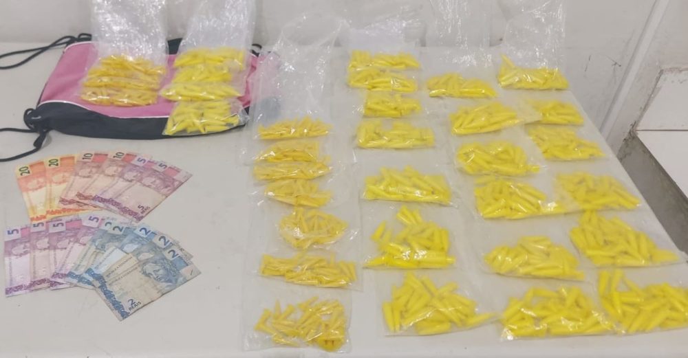 O jovem foi abordado e de uma mochila foram encontrados 104 pinos com cocaína e 104 com crack, além de R$ 100 que estavam em poder do menor.