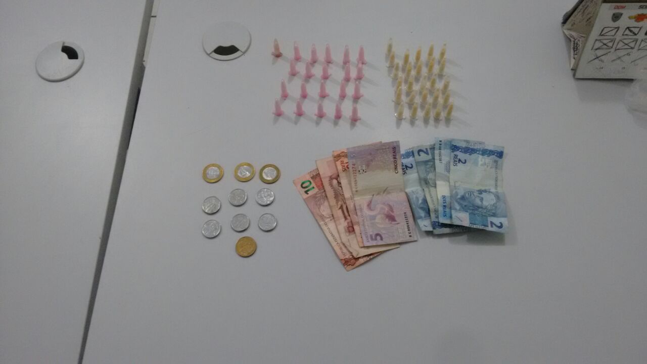 Em revista pela área, os militares apreenderam 25 pinos com crack e 21 com cocaína, além de pequena quantidade em dinheiro.