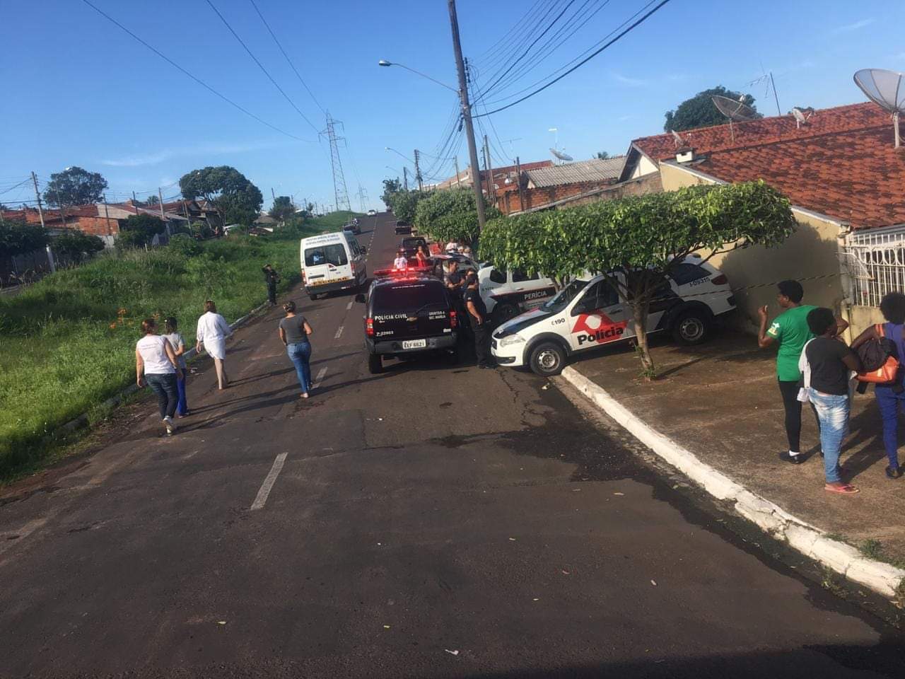 Polícia Militar e Civil no Jardim Santa Antonieta, onde o corpo foi encontrado (Foto: William Henrique de Souza Soares)