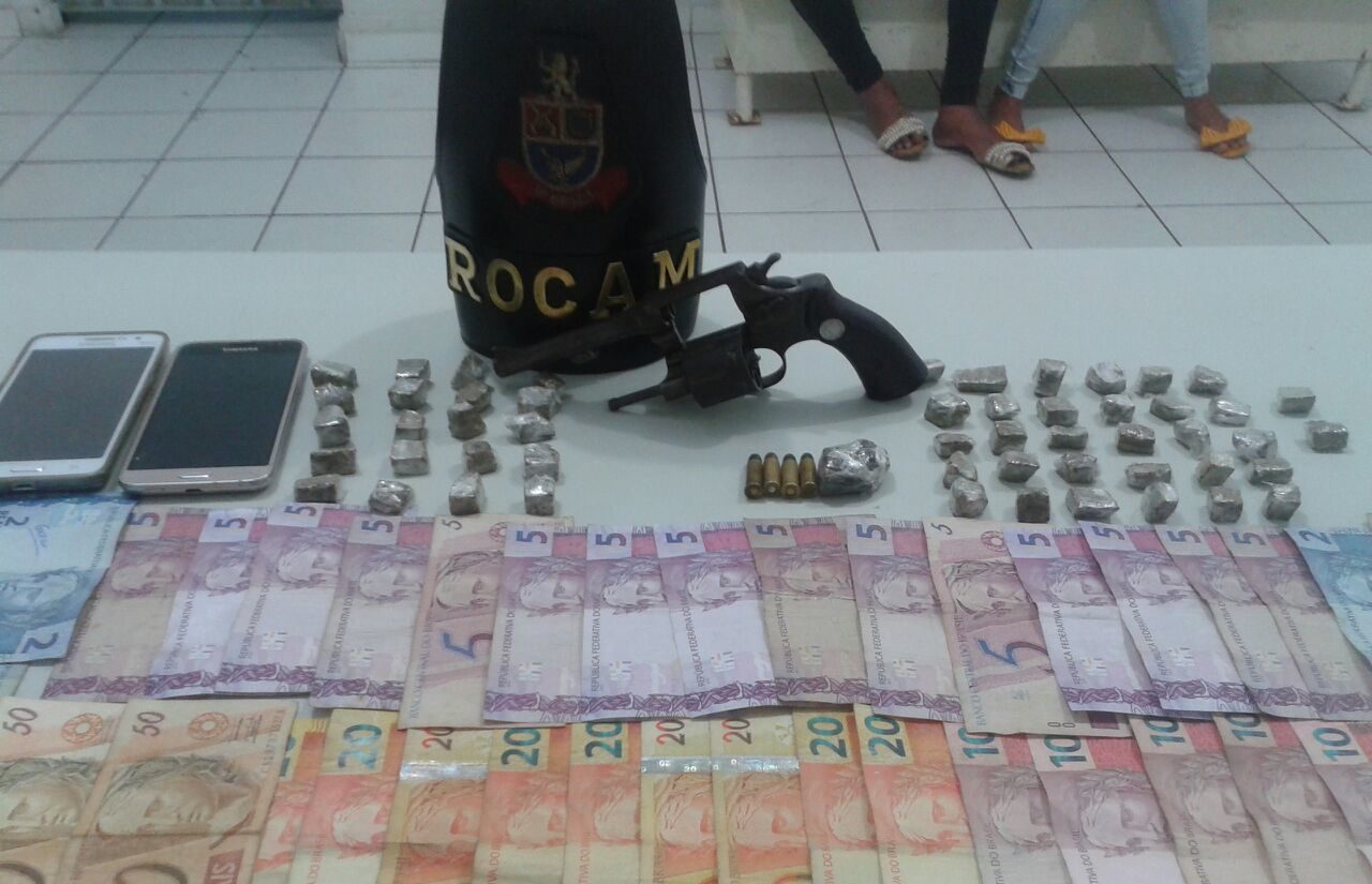 Droga, arma e dinheiro apreendidos pela Rocam (Foto: Divulgação)