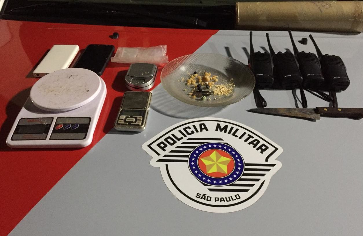 Além disso, após ser realizada uma varredura no local, foram encontradas duas balanças de precisão com resquícios de crack, quatro rádios comunicadores com carregadores e diversos apetrechos para embalar drogas.