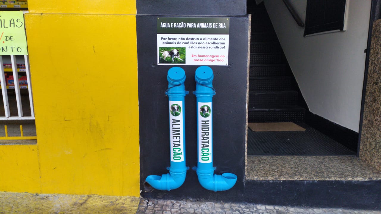 Semanas após a morte de Tião, o advogado decidiu homenagear o animal com o dispositivo, conhecido como “comedouro”. A ideia não é inédita. Em muitas cidades já se confecciona o comedouro, feito com cano, cotovelos, braçadeiras e tampa de PVC, além de cola. Tudo montado vira um depósito para colocar alimentos.