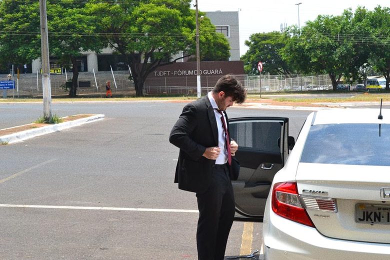 Um fato inusitado aconteceu no estacionamento do Fórum do Guará (DF). Um homem foi fotografado tirando a roupa e vestindo um terno no local.