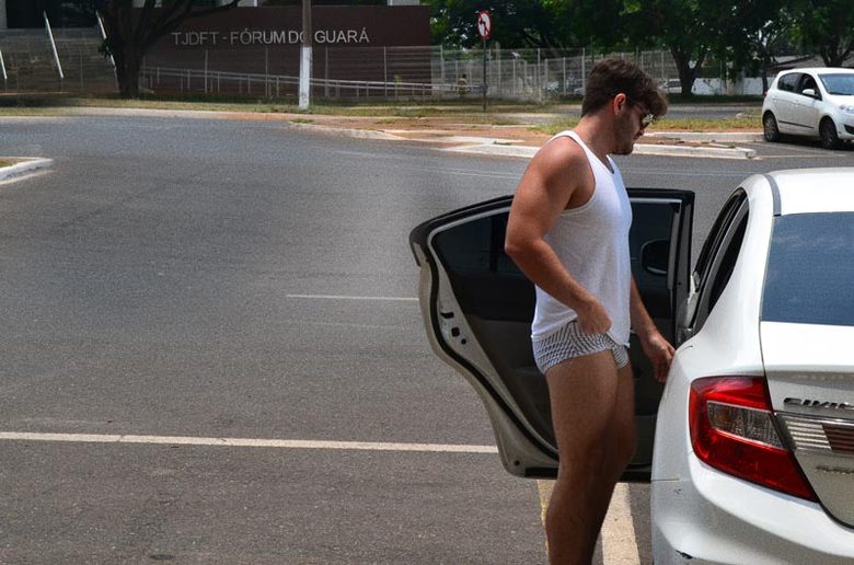 O desinibido é o advogado Marco Antonio Vicenzo, de 25 anos, que disse ao R7 DF ter o costume de se trocar em estacionamentos.