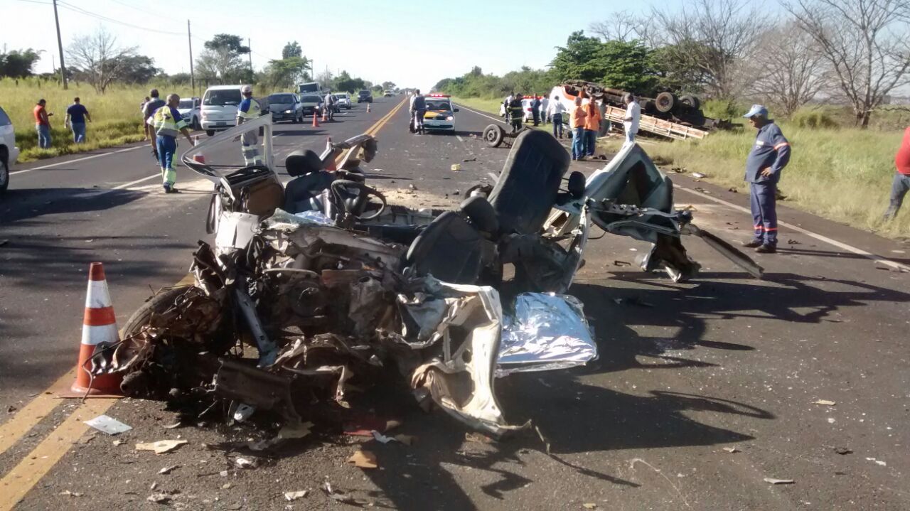 De acordo com as primeiras informações do Corpo de Bombeiros, carro e caminhão, ambos de Marília, teriam se chocado no local. O automóvel, um Volkswagen Gol, ficou completamente destruído.
