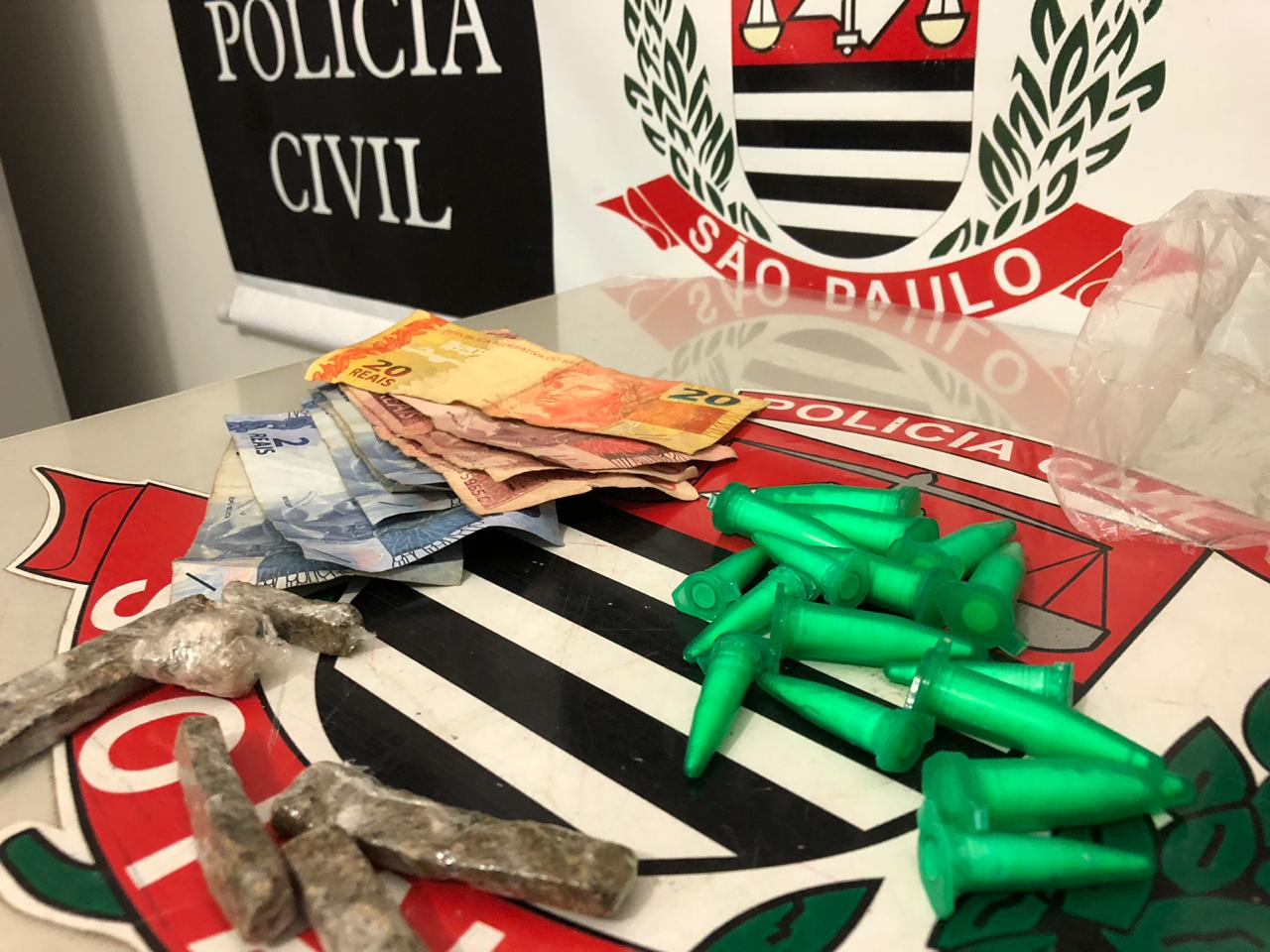 Durante a fuga, ele tentou jogar uma sacola em um matagal, mas o embrulho foi localizado pelos militares. Em revista pessoal, os policiais localizaram 16 pinos com cocaína (pesando 30 gramas), seis porções de maconha (pesando 20 gramas) e R$ 60 em dinheiro.