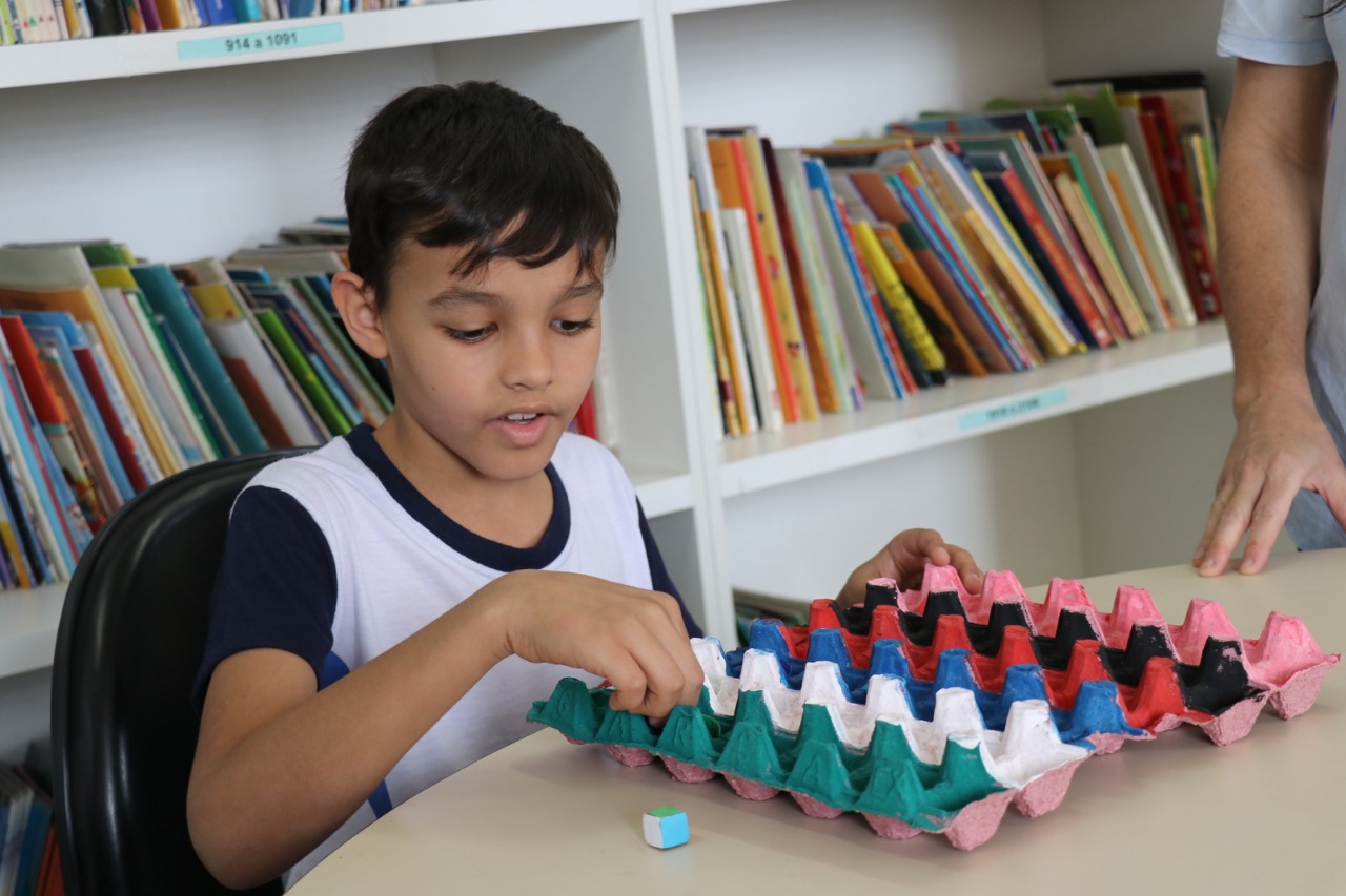 O aluno Eduardo Henrique da Silva Ramos, do 4º ano A da Emef Professora Nicácia Garcia Gil, das professoras Lígia Mendonça Aukar e Cícera Severino da Silva, venceu o concurso “Protetores do meio ambiente, recicle!”, na categoria 4, produzindo um jogo das cores confeccionado a partir de cartelas de ovos, tampinhas coloridas, tinta guache e dado de papel.