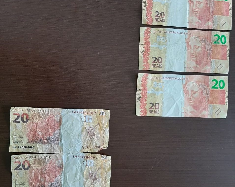 Uma funcionária percebeu que um aluno havia pagado com duas notas falsas de R$ 20. O aluno tentou realizar uma segunda compra, mas a mulher não aceitou as notas falsas.