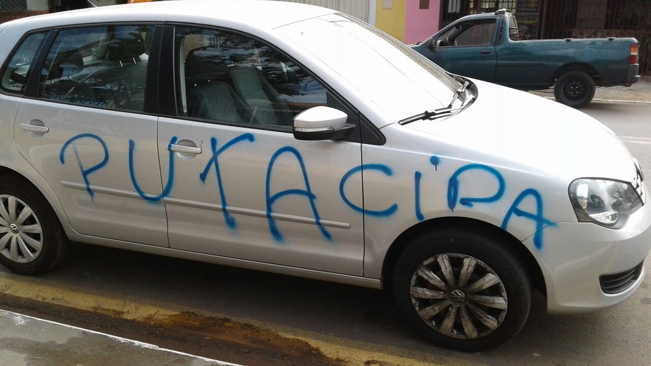 Carro foi pichado por aluno em Marília (Foto: Divulgação)