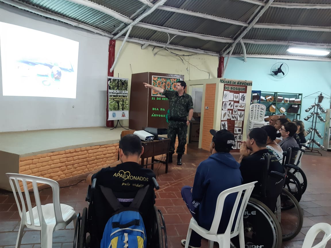 Alunos da Apae participaram na manhã desta sexta-feira (27) de uma palestra com o policiamento ambiental de Marília.