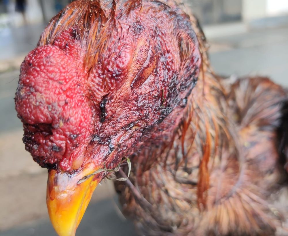 Foram identificados quatro galos índios bastante debilitados, com a cabeça e pescoço machucados, e mais 12 outros acondicionados em viveiros de madeira com as barbelas e esporas cortadas, todos com sinais de luta e machucados pelo corpo. Dentro da área de lazer do imóvel, foi localizado um rebolo completo recentemente usado.