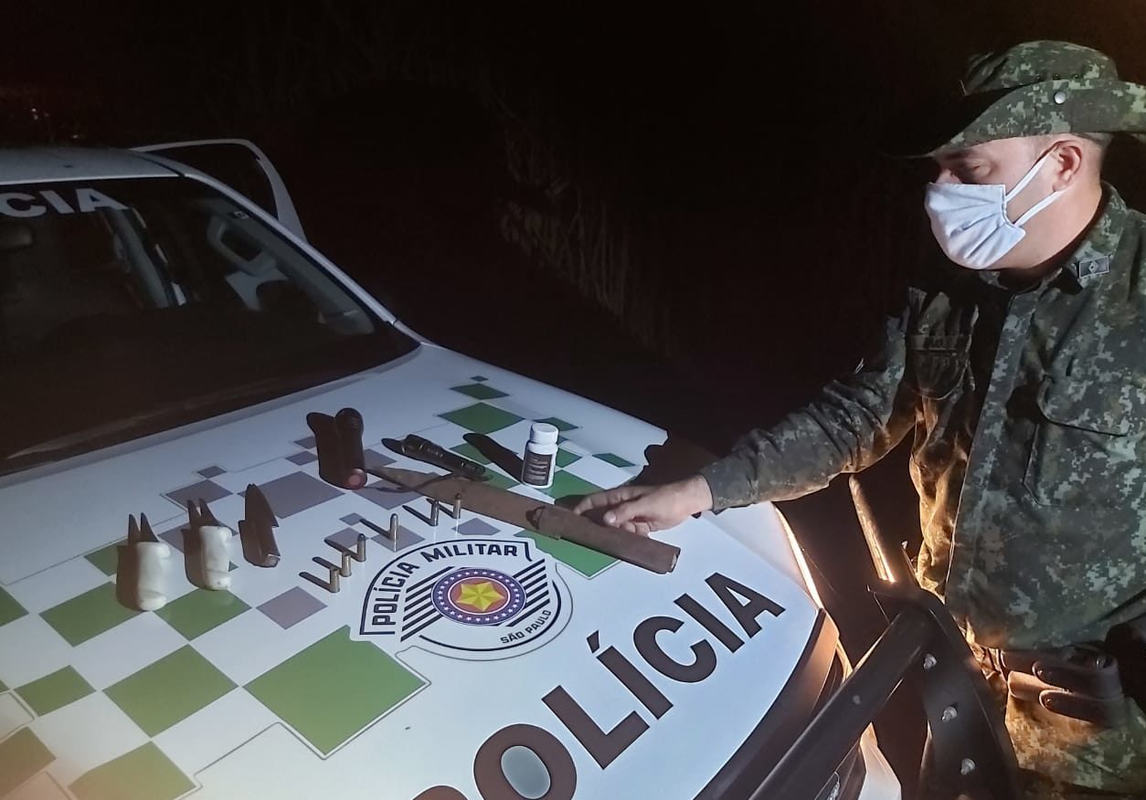 A Polícia Ambiental apreendeu diversos objetos utilizados para caça, além de munições, nesta quarta-feira (13) em Pompeia (distante 31 quilômetros de Marília).