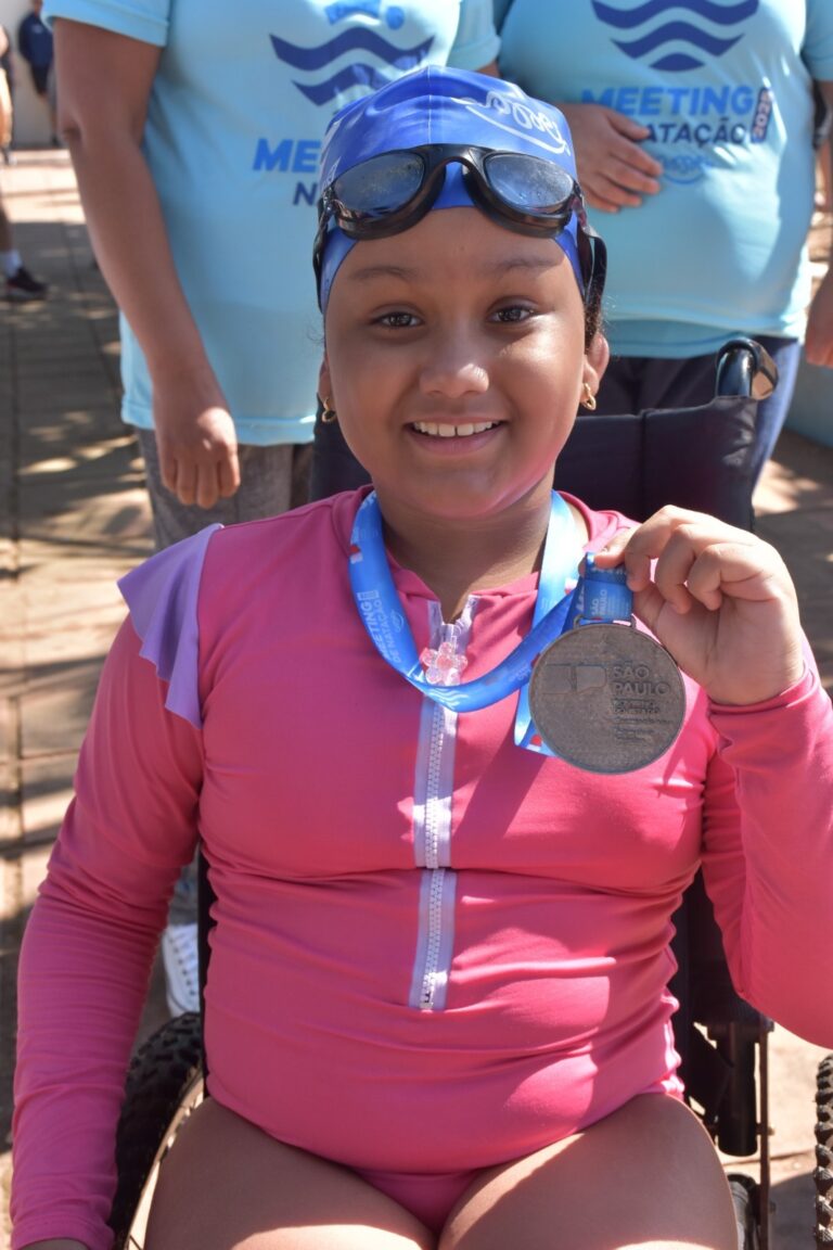 Luíza da Silva tem nove anos, faz natação na Amei há dois anos, e ganhou medalha por participar das provas. A garota precisa de cadeira de rodas porque tem mielomeningocele e hidrocefalia. “Está sendo ótimo”, afirmou o pai dela, Caio da Silva, sobre a participação da filha no evento viabilizado pelos deputados. “Para ela é muito gratificante, pois a vida já é tão difícil”.