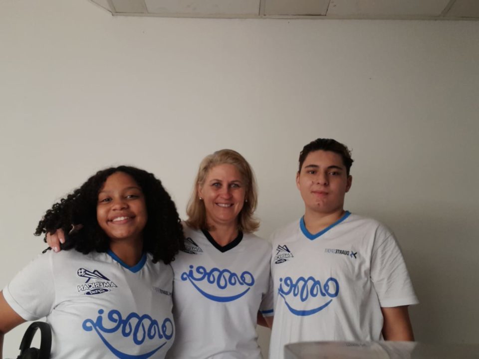 A técnica de natação da Associação Mariliense de Esportes Inclusivos (AMEI), Zinha Garutti, e os nadadores Luís Gustavo Maranho e Isadora Silva, da classe S14, participam das Paralimpíadas Escolares, o maior evento mundial para pessoas com deficiência em idade escolar, no Centro de Treinamento Paralímpico, em São Paulo.