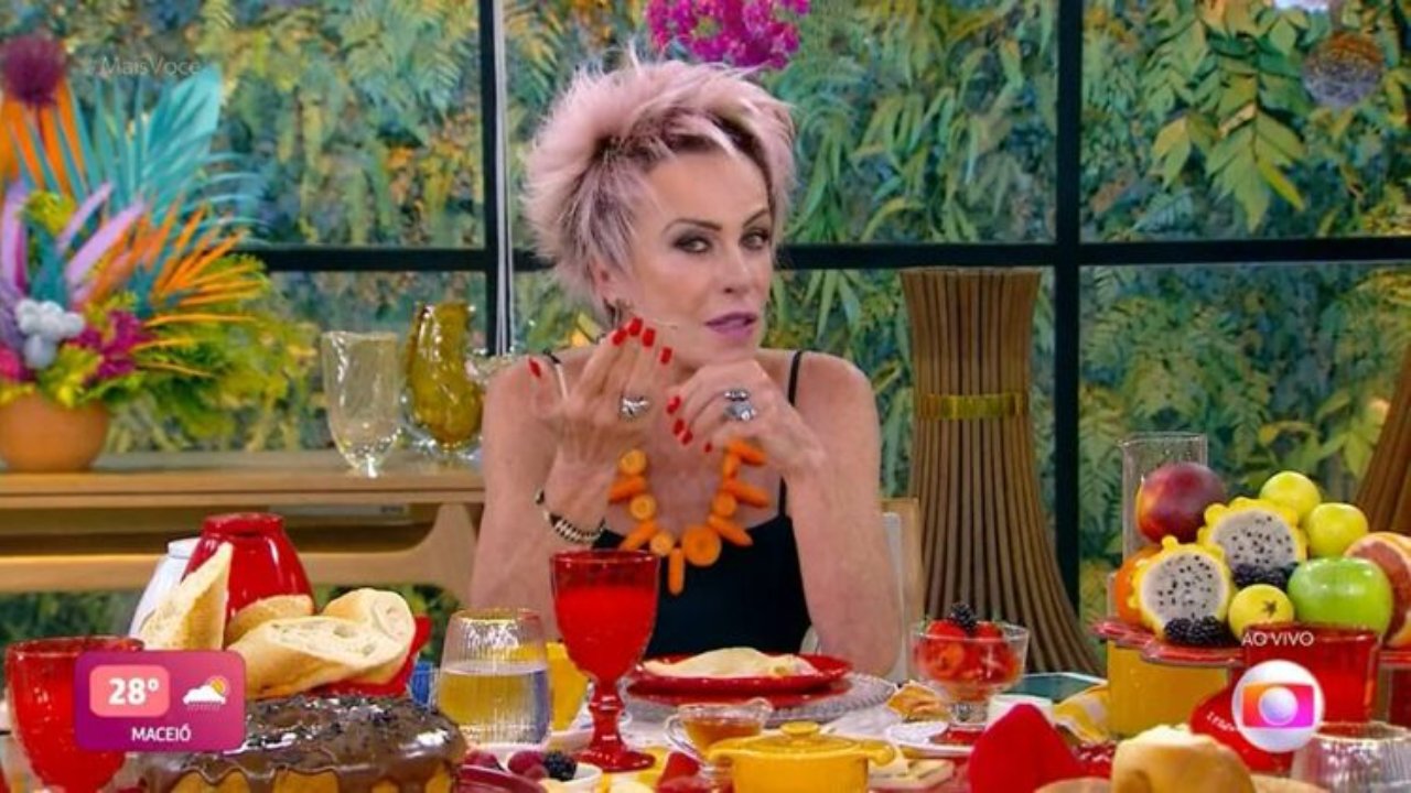 Ana Maria Braga começou a semana com um protesto em tom de humor no Mais Você. Na manhã desta segunda-feira, 14, na abertura do programa, a apresentadora apareceu diante das câmeras com um colar feito de cenouras. A iniciativa foi para chamar a atenção para a alta de cerca de 50% do vegetal em fevereiro.