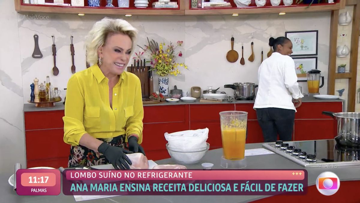 Nesta quinta-feira, 9, Ana Maria Braga teve uma crise de riso enquanto preparava uma receita de lombo suíno ao vivo no programa Mais Você, da TV Globo.