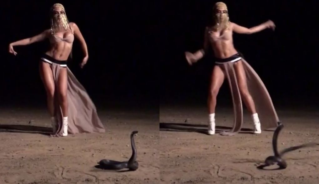 No vídeo, ela dança no deserto em frente a uma cobra. Quando o animal se mexe, porém, Anitta se assusta e corre para longe.