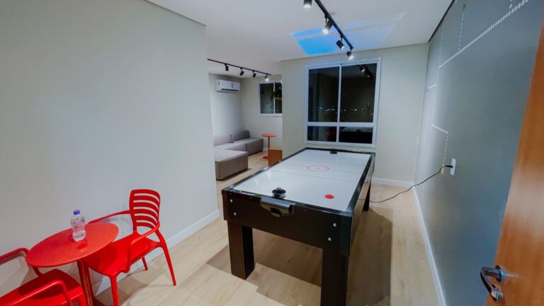 Entre os diferenciais do Reserva Mirali está a ampla estrutura de lazer, que inclui piscinas, espaço fitness, brinquedoteca, coworking, mercado, áreas de convivência e um mirante com uma vista incrível da cidade.